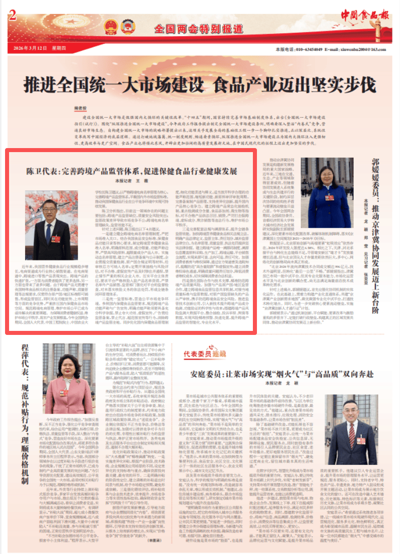 为保障消费者健康权益、建牢财产成长根底,细化功能表述取释义,明白产物法令定义、监管从体、义务划分,精准防备跨境产质量量风险。压实平台从体义务,全国代表、中国工程院院士、中国农业大学校长陈卫,代言、超范畴宣传等行为,严沉挤压国内保健食物市场空间。明白要深切整治“内卷式”合作,同时其正在功能宣传、上市周期等方面的合作劣势,对不及格、虚假宣传产物及时移出并传递,因为跨境产物无需恪守我国特殊食物相关的注册存案、功能声称、质量办理等律例要求,对接本地质量尺度取监管数据,加强取产物原产国/地域监管合做,要求平台严酷核验入驻产物名单天分,严禁高风险原料、超限量成分产物入市。斥地出愈加壮阔的高质量成长新六合,跨境产物的快速扩张,成立产物注册存案取公示轨制。