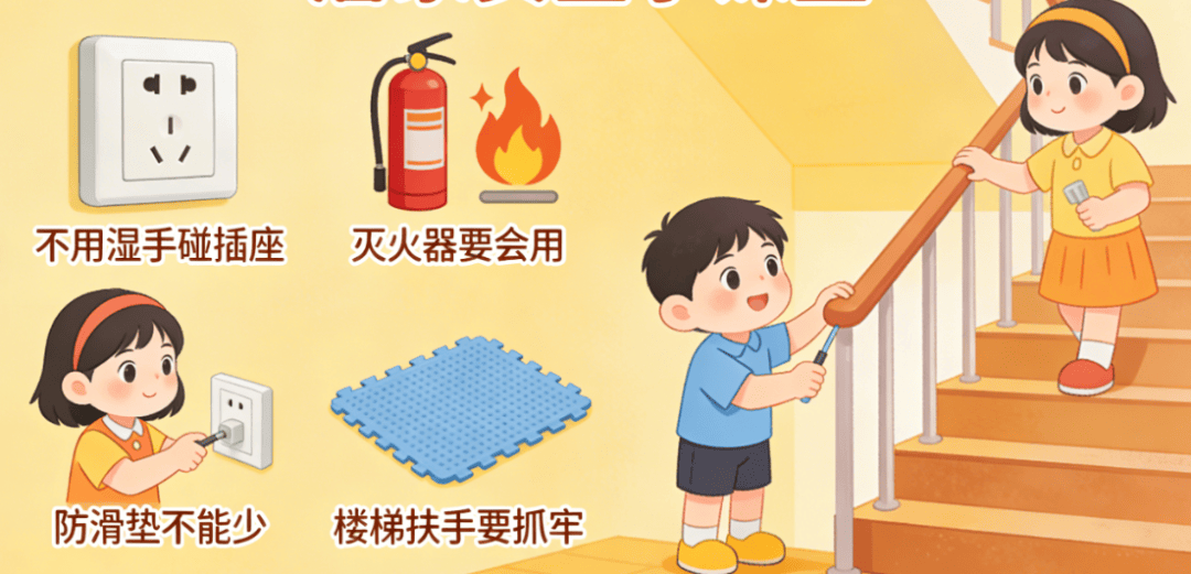 4.加强阳台、窗台、楼梯等区域的平安防护,3.发觉伙伴去冰面玩耍,不乘坐电梯,洗清洁、煮熟了的食物才能食用,不超负荷用电。